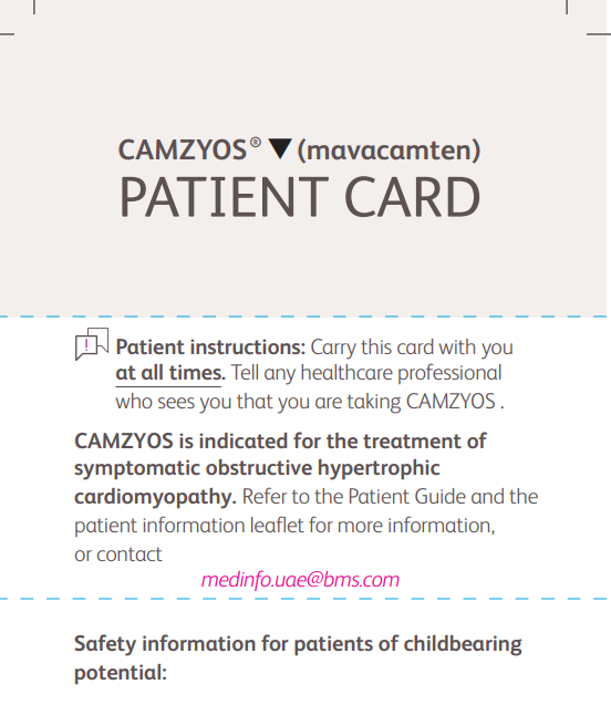 - The risks associated with CAMZYOS and when to seek medical attention
